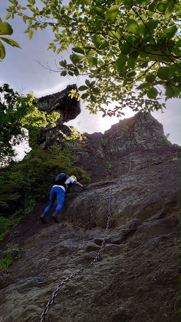 キケン箇所には大体鎖が垂らしてありますが、コレに頼らないのがハードコアハイカーの流儀なのだそう?!